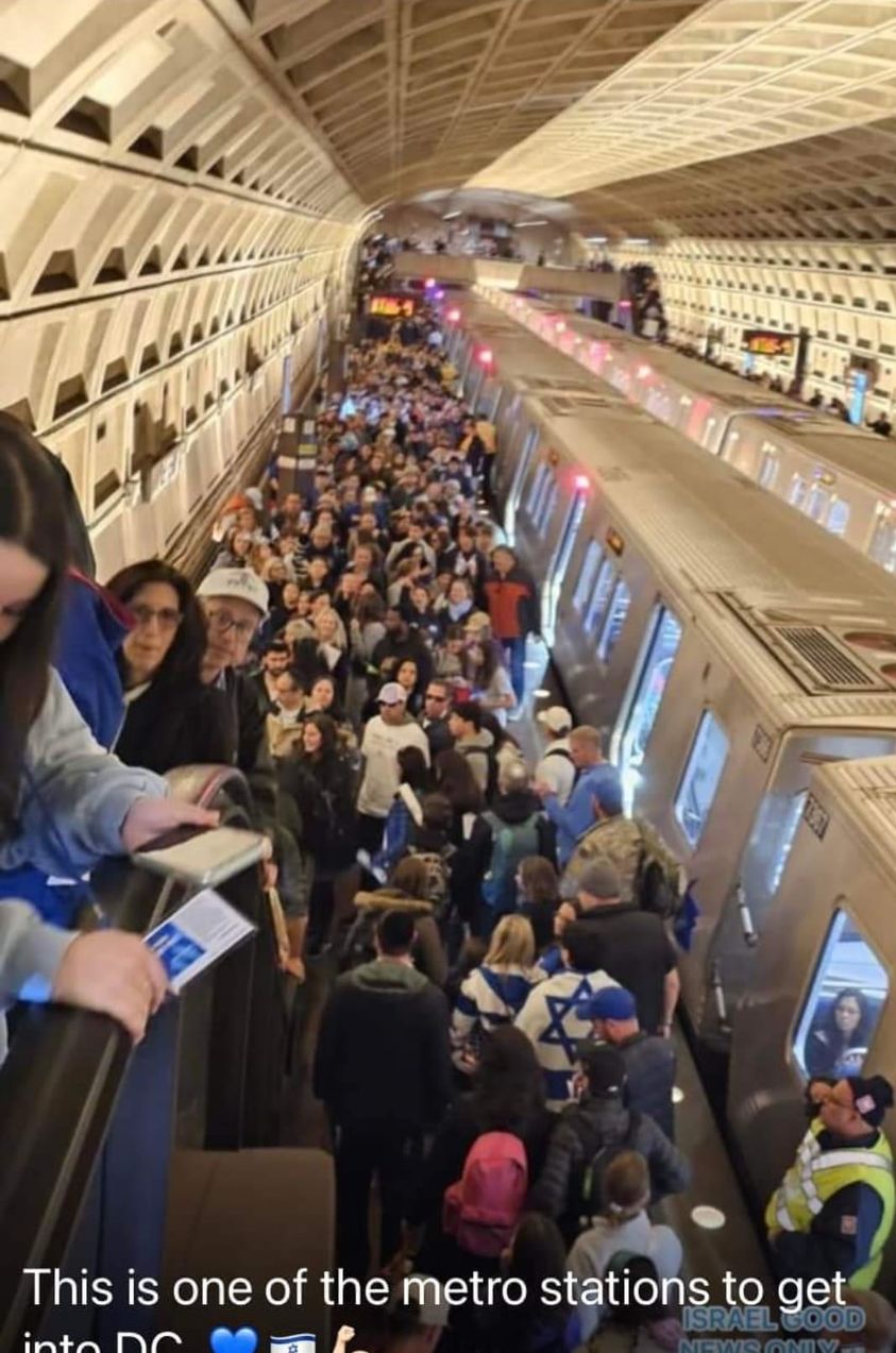 But riding home was a totally different matter. After the Rally, I think people’s inhibitions had kind of gone away. Well that and the fact that 290,000 people were trying to hit the Metro at the same time. The Israel paraphernalia was everywhere on the way home.